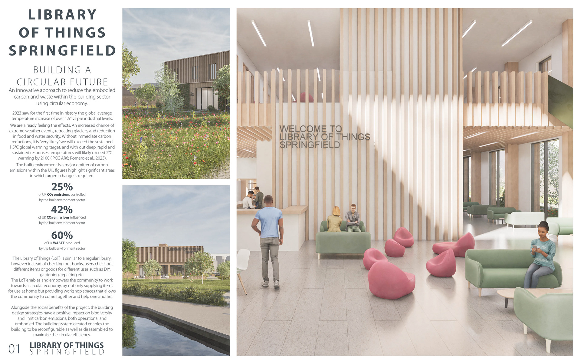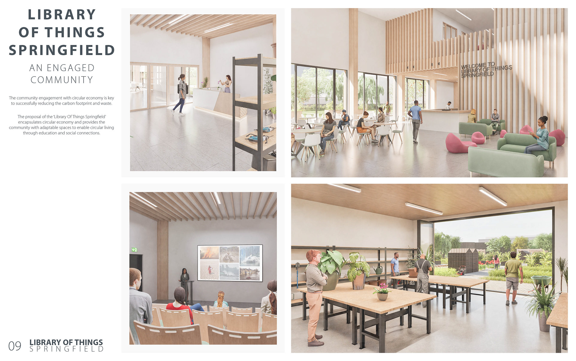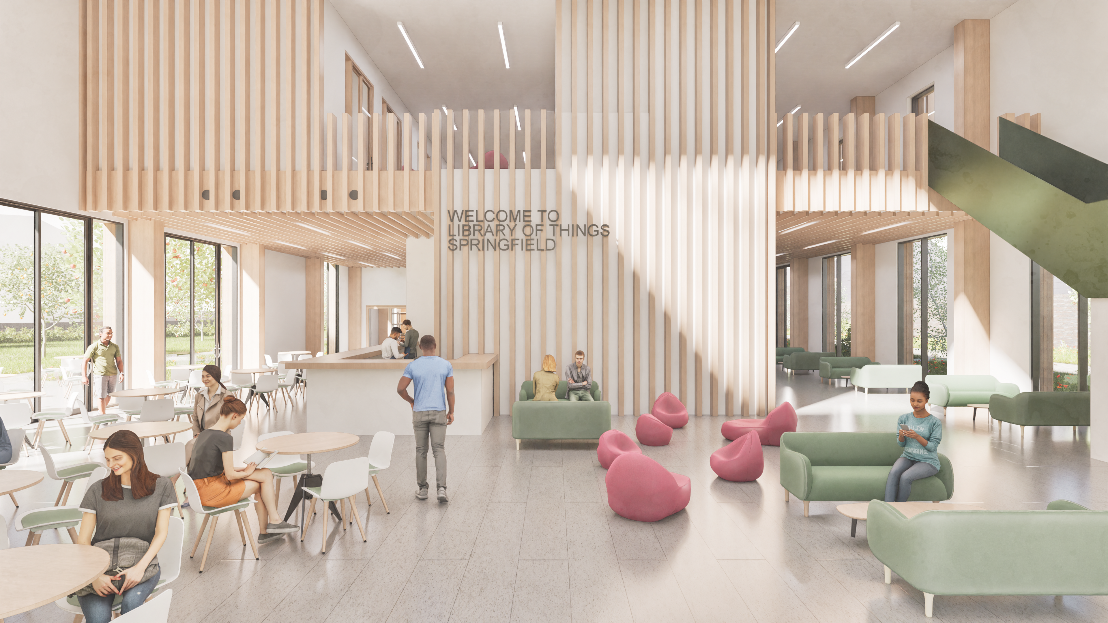 Library of Things – Springfield is a sustainable architectural project that reimagines community spaces through circular economy principles.