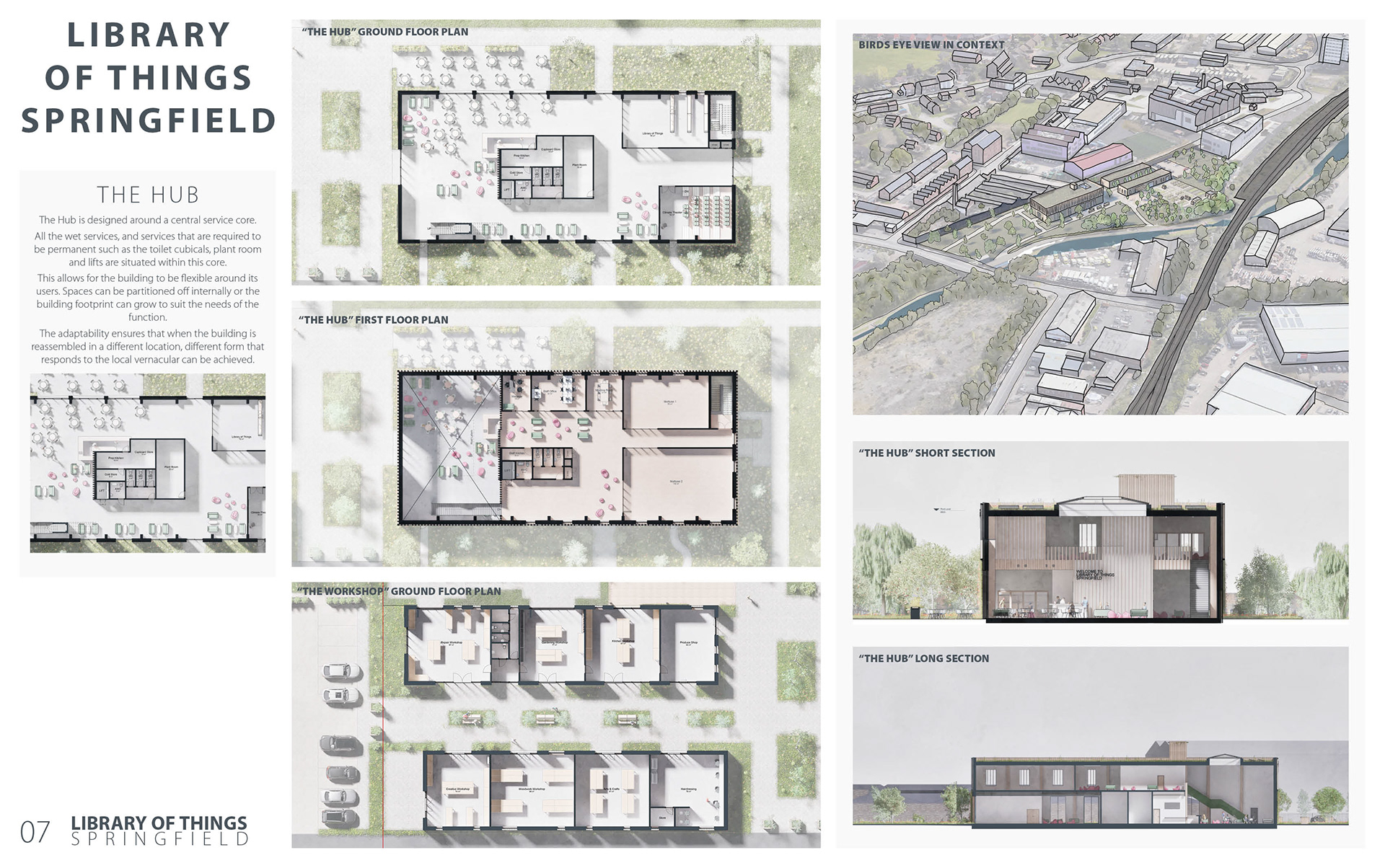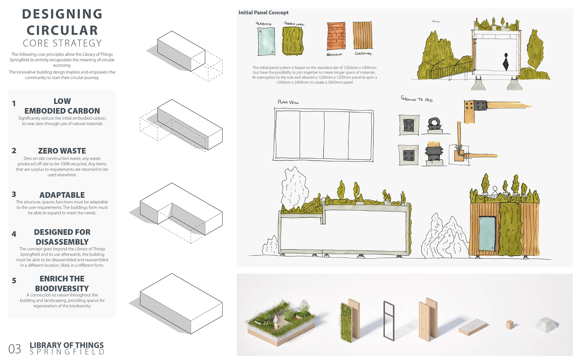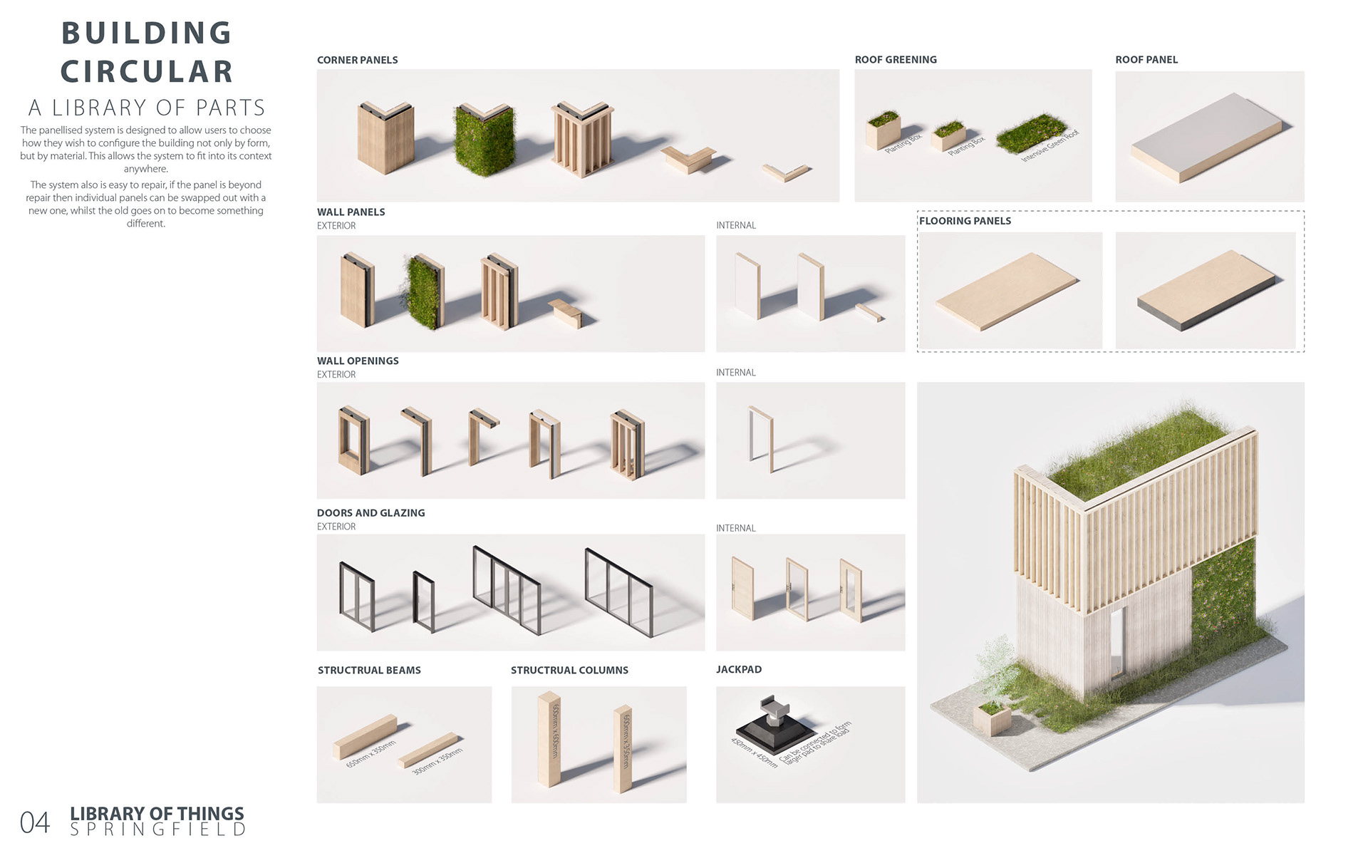 Library of Things – Springfield is a sustainable architectural project that reimagines community spaces through circular economy principles.